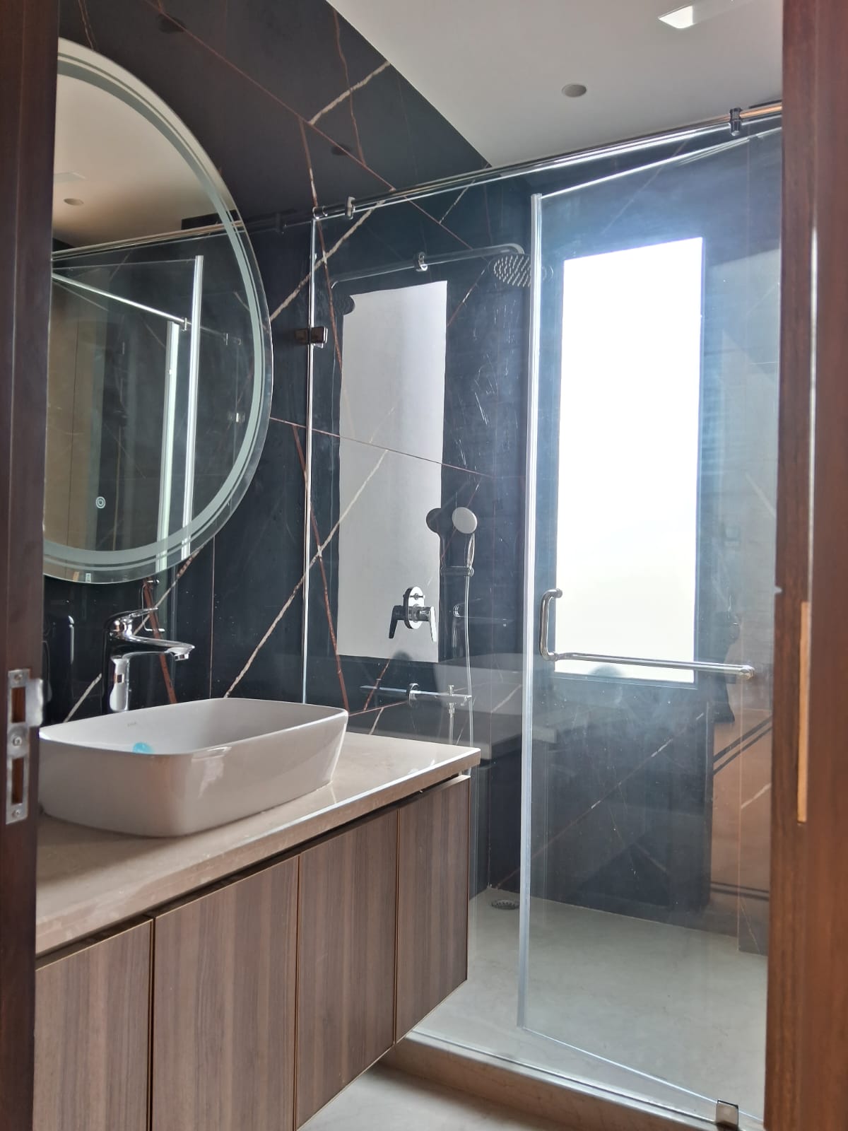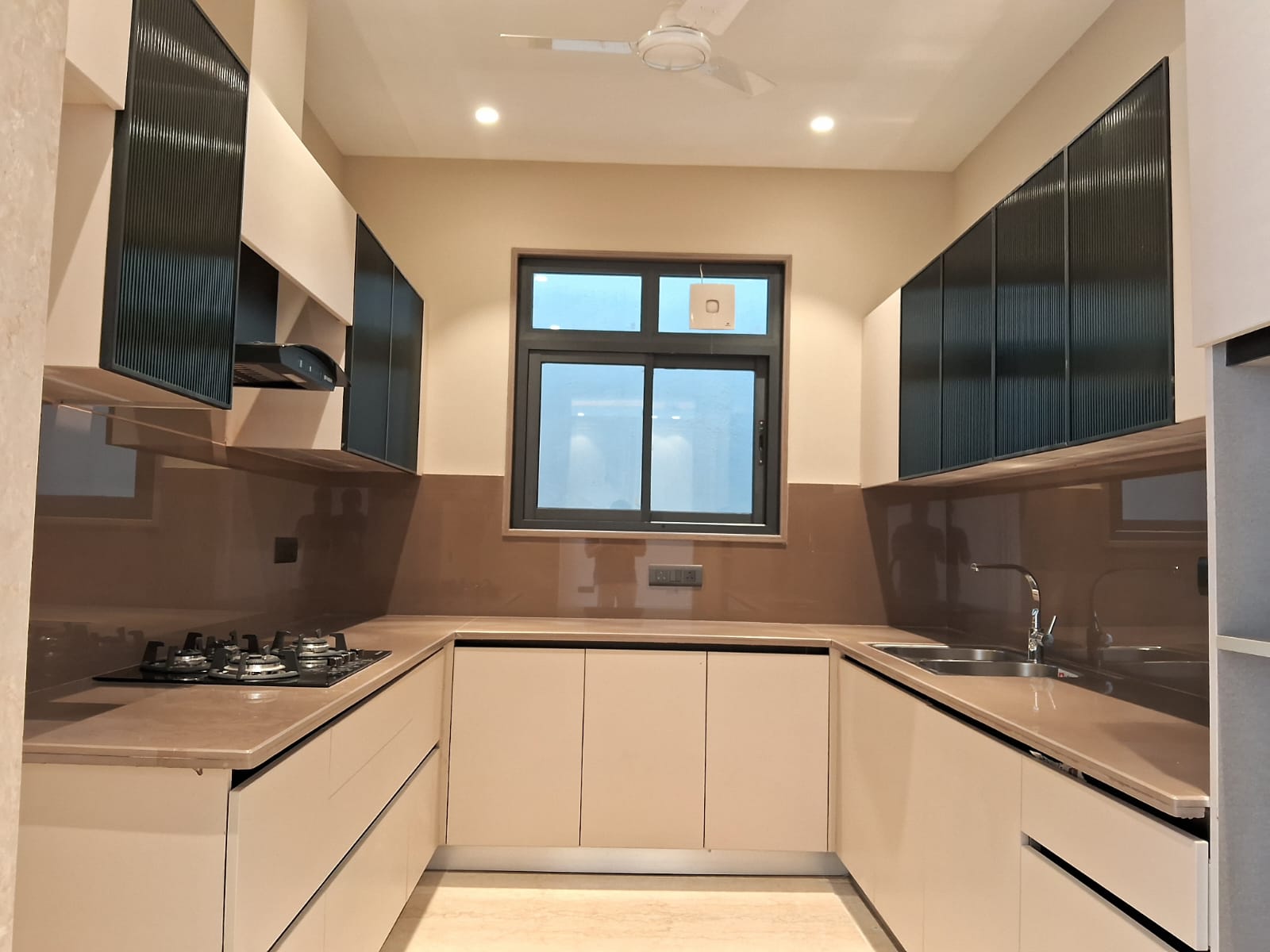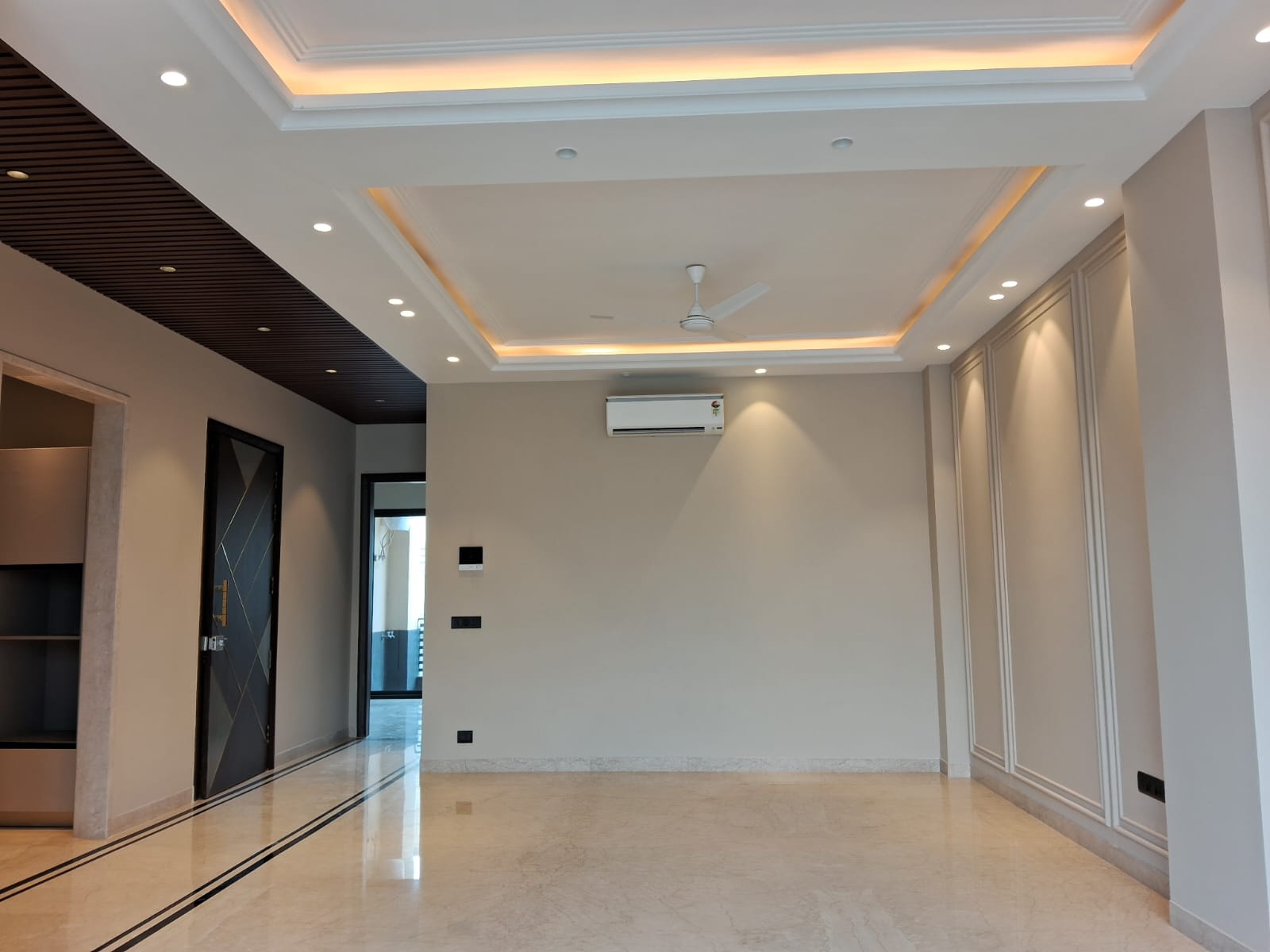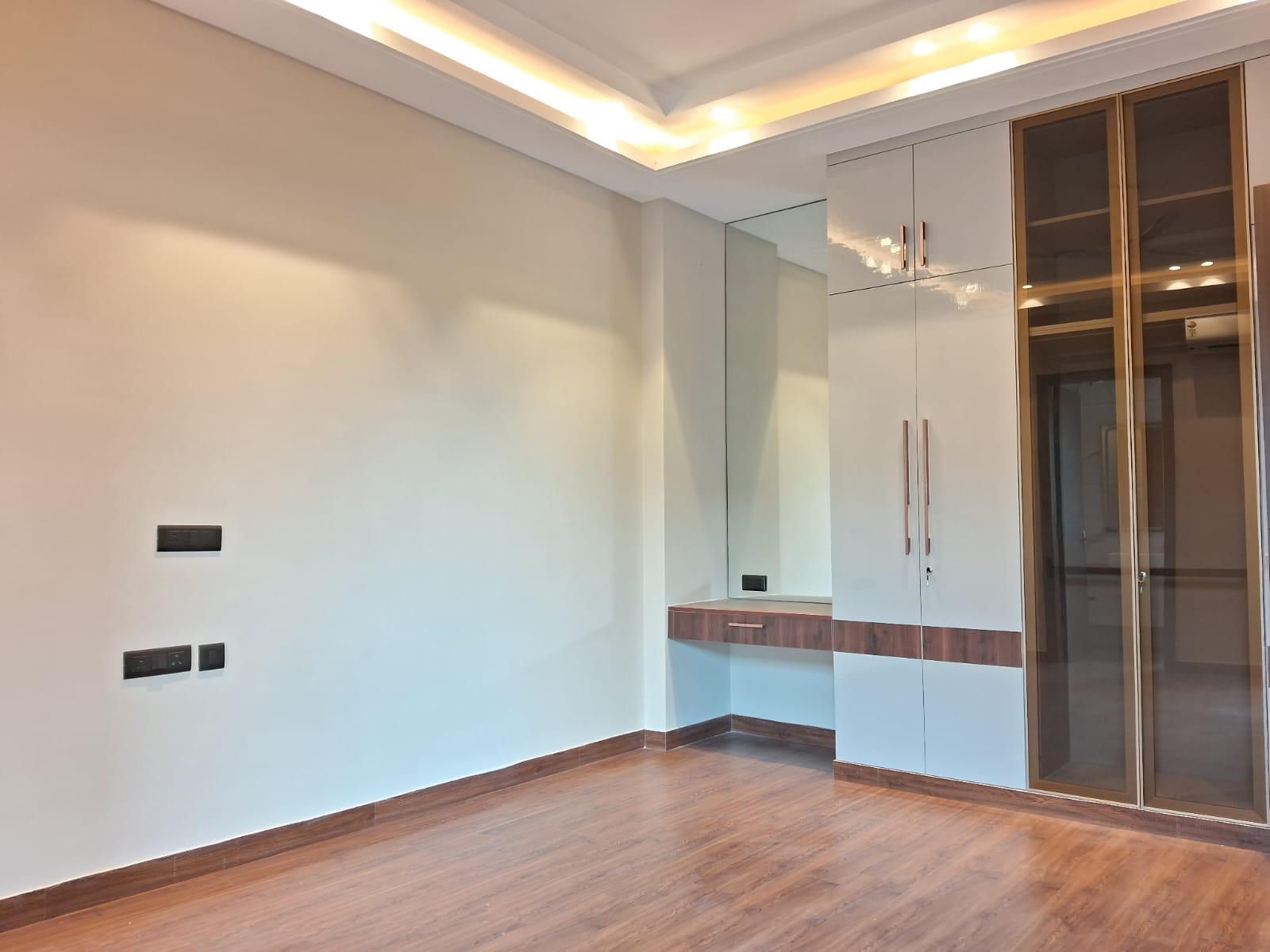 East of Kailash E Block, brand new 2nd floor flat with 3 bedrooms, 3 bathrooms, and 2 balconies, front view home. Built-up area 1960 sq ft and carpet area 1800 sq ft. The flat is semi furnished with 5 ACs, 4 geysers, and modern interiors designed as latest 7-star luxury flats.